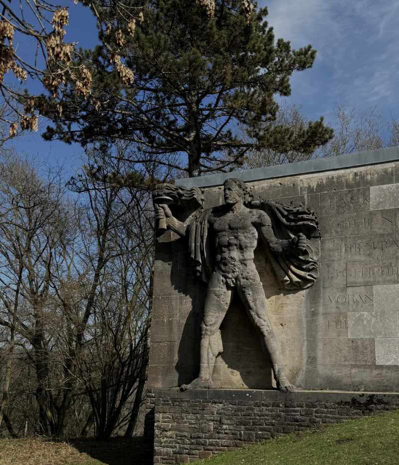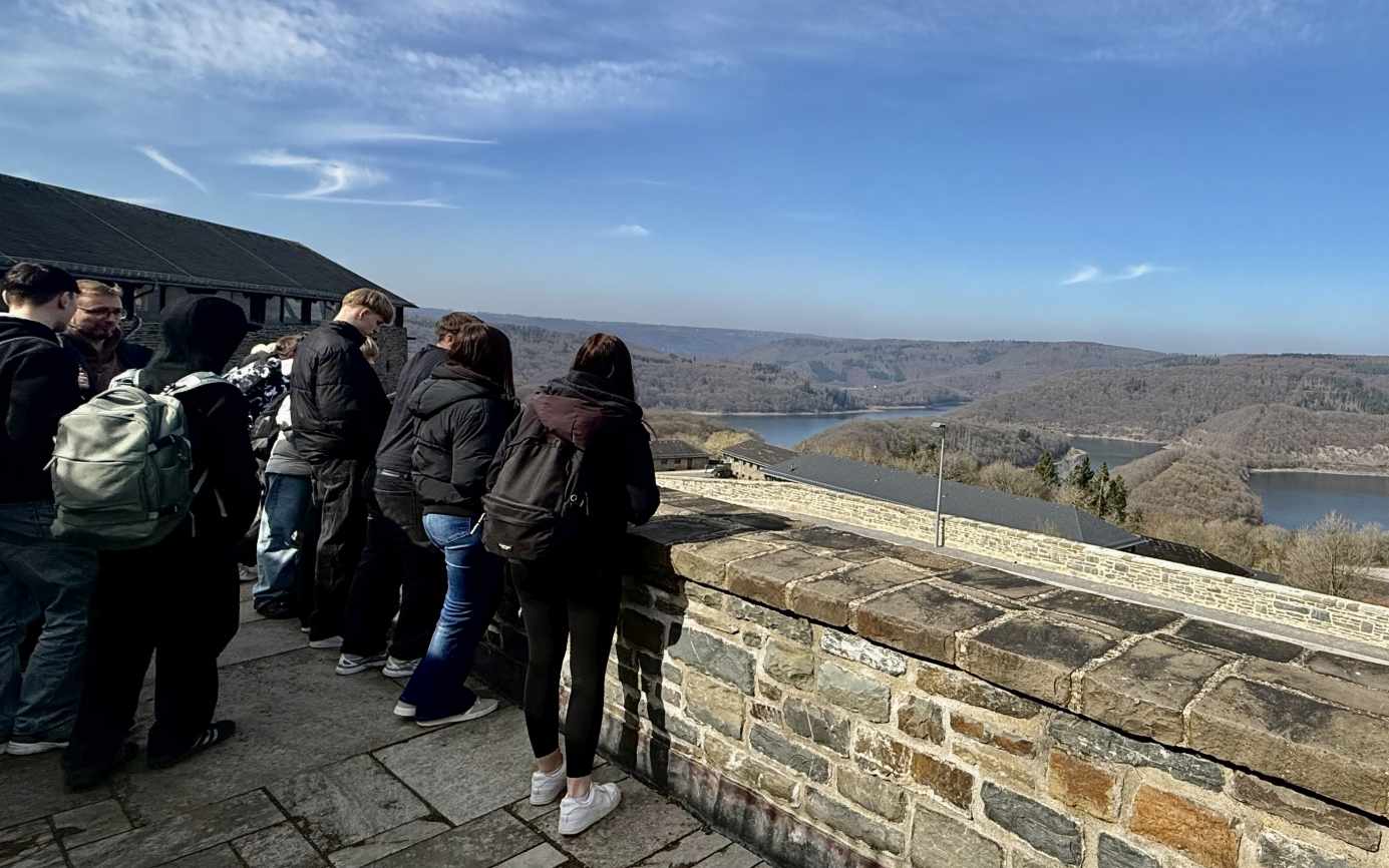 Auch das Gelände selbst bot zahlreiche Anknüpfungspunkte für historisches Lernen. Besonders eindrucksvoll war die Begegnung mit der sogenannten „Fackelträger“-Statue – ein Relikt aus der Zeit des Nationalsozialismus, das heute zur kritischen Auseinandersetzung mit Ideologie und Propaganda anregt. Bei bestem Wetter konnten die Schülerinnen und Schüler zudem die besondere Atmosphäre und den weiten Ausblick über die Eifel genießen. Die Exkursion hat einmal mehr gezeigt, wie wichtig es ist, Geschichte zu verstehen, um Verantwortung in der Gegenwart zu übernehmen und sich aktiv für ein respektvolles und demokratisches Miteinander einzusetzen.